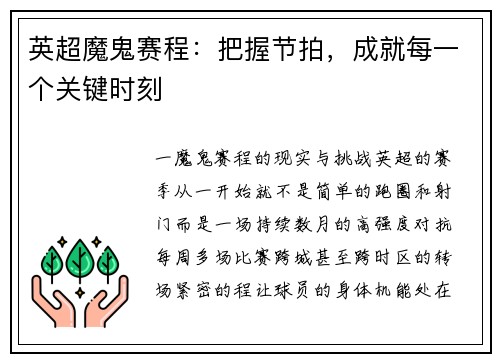 在中国,有一群人过着“半夜党”的生活。他们不熬夜打游戏,不通宵刷剧,而是定好闹钟,凌晨三点准时把电视或电脑打开,静静等待那一声哨响。他们的名字很简单,也很骄傲——英超球迷。 凌晨的孤独与燃烧英超联赛的独特之处,不仅在于那种英伦式的硬朗与快节奏,更在于它强行嵌进了中国球迷的生活生物钟。你可能完全看不懂别人为什么要为一场“千里之外”的比赛牺牲睡眠,但对于英超球迷而言,那是信仰的必修课。凌晨三点的客厅里...